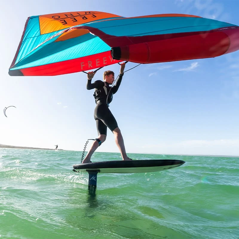The FreeWing GO has a pioneering ultra compact geometry, suitable for any level of rider. The shorter wingtips do not catch when learning, gybing and during advanced waterstarts or rotations. The short wingtips also enhance the ease of use when not foiling or on snow, ice, with skateboards and land boards.