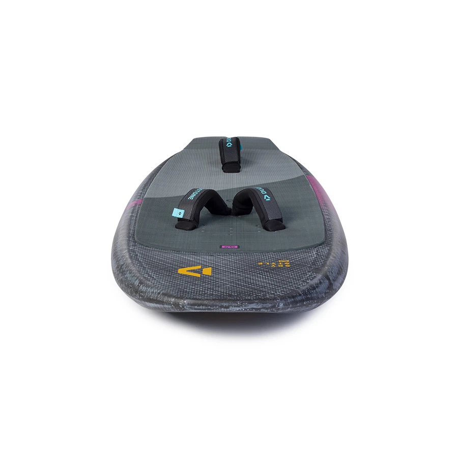 - Earlier take-off’s: The double-concave to flat bottom shape allows for higher take-off speed and better release off the water allowing you to get up on your foil even earlier.