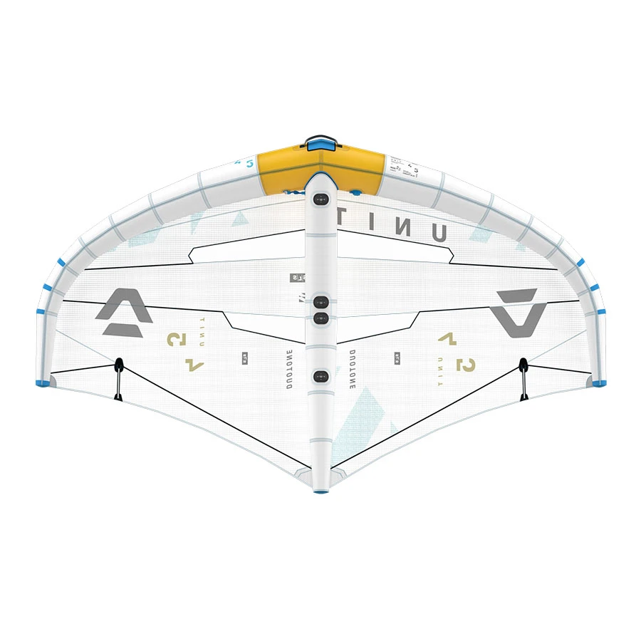 The Unit SLS Concept Blue features an undyed PentaTX frame and strut with an Aluula Gold centre segment, providing stiffness where it’s most needed. While our D/LAB construction represents the high-end model, we are excited to introduce the Unit in the Duotone “Strong – Light – Superior” construction, offering a high-performance wing for those seeking the best cost-to-performance ratio.