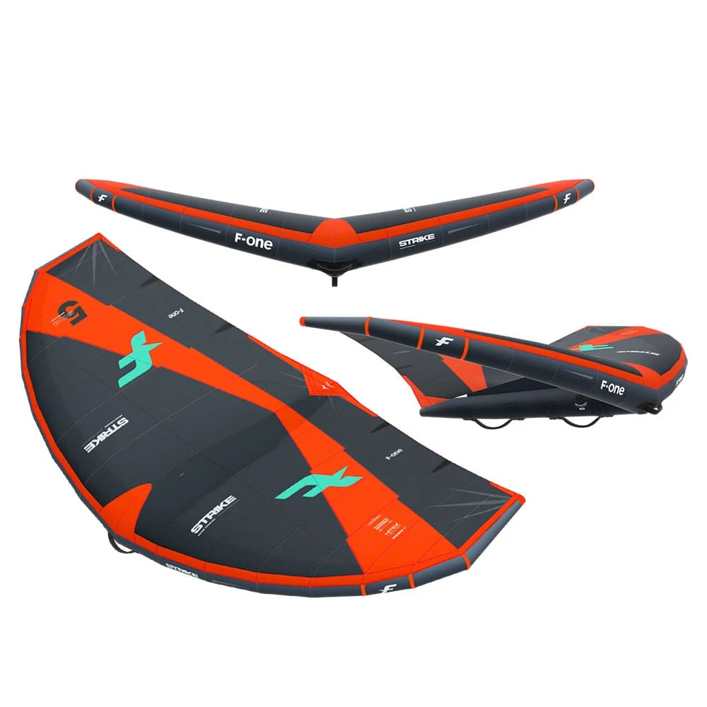 The all new F-One STRIKE V4 features once more a superintuitive pumping with a certain flexibility that makes it easy to start planing without having to expend a lot of energy or learn a special technique. The V4 STRIKE responds to pumping with immediate power. The F-one design team have worked on the wings balance and aerodynamics to ensure exceptional and superior performance while maintaining control and precision. This new V4 STRIKE offers an unrivalled smoothness in power delivery that makes it possible to ride effortlessly, as if using a smaller, very light wing. The V4 STRIKEās control throughout the wind range is impressive allowing you to easily handle gusts. For those who love speed, the V4 wing provides a new āMoving Forwardā feeling that unlocks a fantastic horizontal acceleration.Ā At the lower end on the wings wind range, it never seems to suffer from holes in the wind or changeable winds, maintaining a constant glide with an exceptional upwind ability.Ā Thanks to its stiffness, acceleration, massive pop and hangtime, the V4 STRIKE will also have you hooked on freestyle. For rotations, the V4 STRIKE turns easily, allowing you to land all your tricks and try out new ones. This V4 STRIKE is so much more than a new model; itās a perfect blend of performance, a lightweight feel and smooth power delivery.