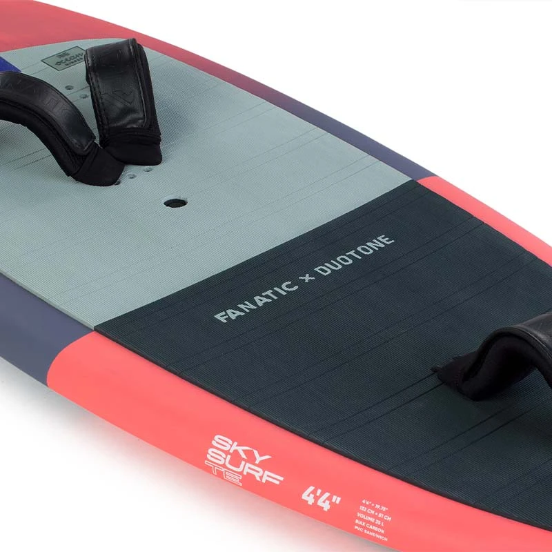 The Sky Surf TE received a complete re-design with concave rail bevels, a new outline and rocker and slightly recessed deck shape. The updated rocker line places the foil at the ideal angle of attack for early take-offs and the recessed deck shape provides extra stability while also maximizing pumping efficiency with an optimized deck angle.