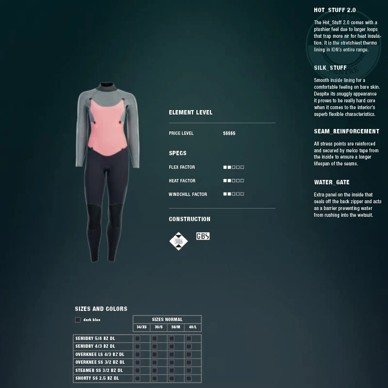 ION’s Element level represents a premium all-rounder shorty wetsuit guaranteed to deliver a lot of bang for your buck! Offering comfort and protection in all the right places, it’s the perfect entry-level shorty suit for keen watersports enthusiasts. Supple, stretchy and robust, it also includes many features from the more technical end of the range: Silk_Stuff inside lining on the upper body provides a comfortable fit and good stretch in the shoulder area. Hot_Stuff 2.0 – ION’s stretchiest thermo lining – improves warmth, flexibility, and comfort even further.