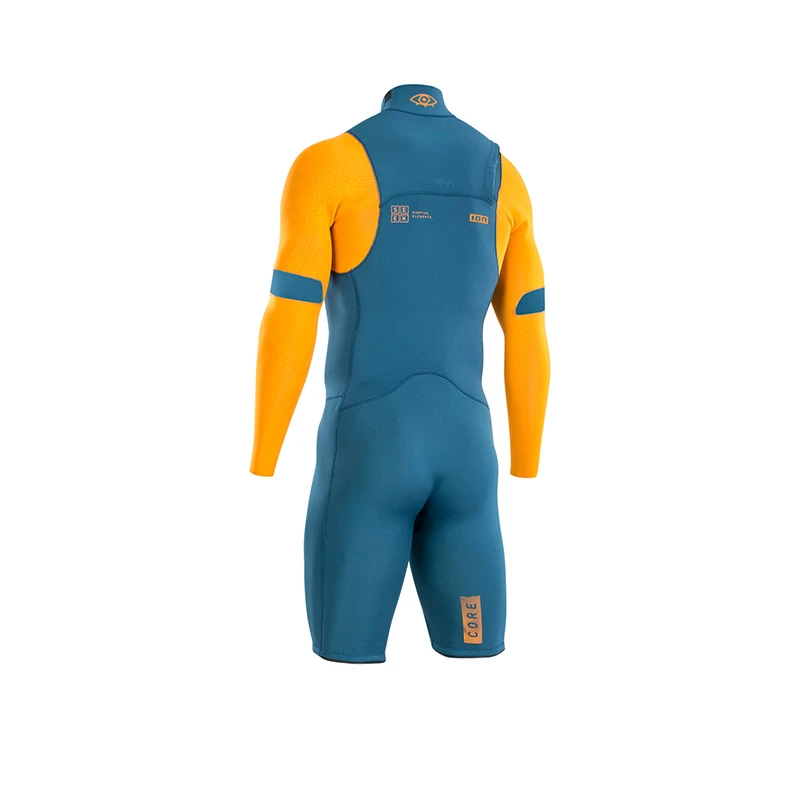 On those summer days when it’s a little less warm than usual, the Seek Core Shorty 2/2 has added Plasma_Plush thermal lining over the entire back area to isolate your body heat. In the areas without thermal lining, super soft Silk_Stuff material has been used for a soft feel on the skin. Seam sealing is done using highly elastic neoprene tape that reinforces every inch of the lower body seams. This ION Seek Core Shorty 2/2 has a front zip which gives you extra freedom of movement and minimizes the chance of water entering the suit.