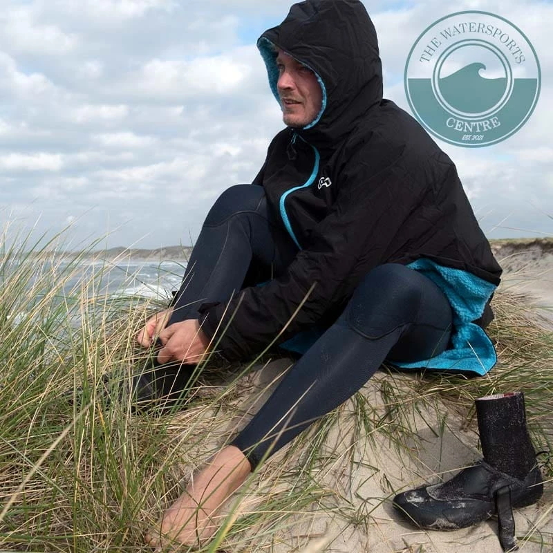 The Storm Coat is your mobile changing robe and comfortable coat in one. It shelters you against rain and storm while providing good breathability. Taped seams and a durable zipper make the coat sturdy enough for rough conditions. The easy-grip zipper makes getting in and out easy, even with cold hands. On the inside, a fluffy teddy fleece increases comfort to the max and cares for extra warmth in between sessions.