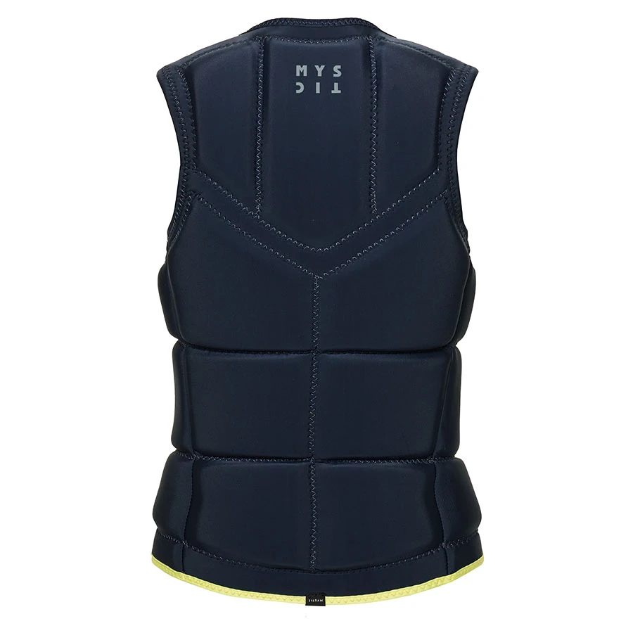 The Mystic Dazzled Impact Vest got your back, literally. Stuffed with clash foam to make sure only your ego hurts when wiping out. This impact vest comes in a choice of two colours: Night Blue with pastel yellow panels and in Black with midnight jungle vibes. Hot, fresh and dazzling with a clash foam front-zip impact vest with zigzag stitching and a Mystic embossed logo on the back. Stylish yet minimalistic giving impact protection when Foiling or Wakeboarding.