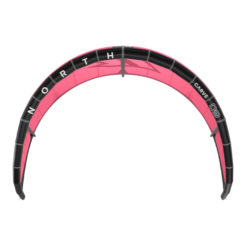 The Carve is a powerful, reactive and controllable kite, ideal for carving up a wave face, tucking into a barrel or boosting strapless tricks. Engineered with a stable, lower aspect ratio design for fast pivot turns and excellent drift, the Carve has an extremely direct feel in both bar pressure and steering initiation. For 2023, North said that they had put the Carve back into its wave riding category and refined the bridles for a longer, more progressive travel which meant the kite feels smoother and more responsive throughout the full depower range. It is still reactive when you sheet out – to the very end. Improved overall balance also enhances drift, so when you’re surfing, it glides down the line, waiting for your bar input. More intuitive control – especially when the kite’s not visible on a big bottom turn, cut back, or in a barrel – means you can focus 100% on the surf. The Carve has a slightly reduced leading-edge diameter and thinned-out profiles. This gives the kite smoother power delivery, improves the high-end wind range, and helps you ride deeper in the pocket for longer. The kite won’t pull you aggressively off the rail, and you’ll have softer landings when doing big jumps. The 2023 Carve will also relaunch faster in critical situations. We’ve introduced lighter bladders in all sizes and a lighter 2-ply canopy reinforcement. This reduces weight and helps improve the turning speed in light wind while maintaining the Carve’s surf-tough durability. The Carve now flies faster, generating more power and board speed. It rockets upwind. Experienced riders will benefit from the kite’s impressive power and efficiency, while intermediate riders will find it offers a smoother, more user-friendly ride. Freeride and Strapless Freestylers will love the improved hangtime and catch for kite loops and softer landings.