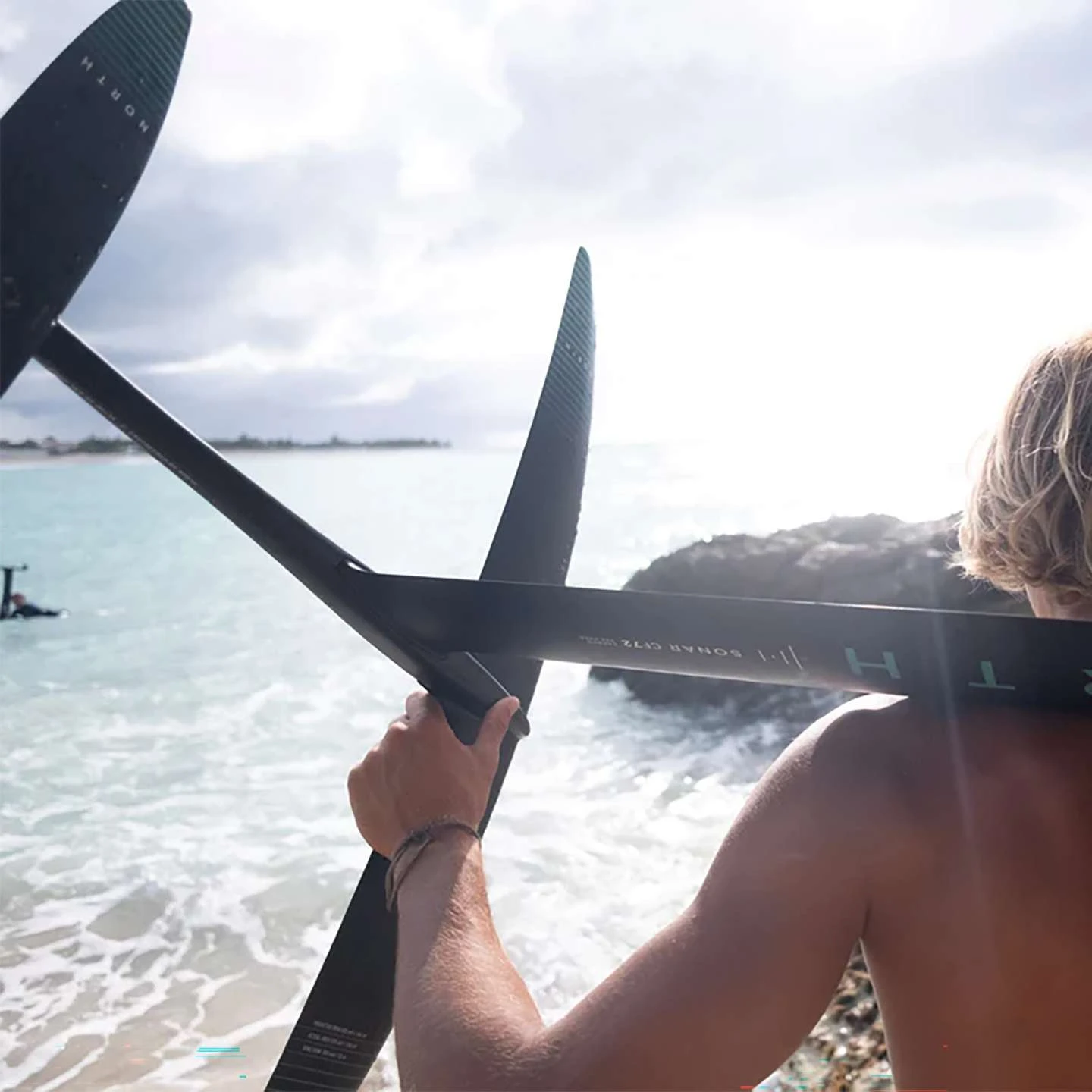 North have engineered their Sonar Surf Series (SF) for super low stall speeds, effortless pumping and surf-style carving. Ideal for riders wanting more from surf and downwind swells (with or without a wing in hand). The foils insensitivity to angle of attack change forgiveness means you don’t have to be an expert or have perfect pumping technique. A refined balance of roll stability and manoeuvrability gives you confidence during pumping and take-offs, and the ability to initiate powerful rail-to-rail carves. Push it harder, lip stall and lay down banking turns, knowing tip ventilation is a thing of the past. Reduced distance between the mast and front wing makes for faster, tighter pivoting turns. North have kept the span similar between the three sizes, providing the same ride feel across the entire size range. The SF promises that frictionless sensation of glide at slower speeds. Responsive and agile. With intuitive recovery. Wakesurfing ten waves back, prone-surfing, wing-surfing, pumping or mastering the downwind. The Sonar SF Series. At one, with it all.