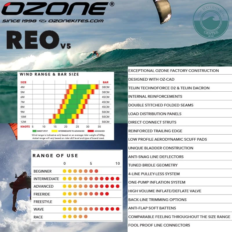 The Reo’s unique flying characteristics allow you to maximize the potential of every wave, giving you the freedom to smash the lip, clear a section, carve turns or snap in the pocket. Fast direct handling and perfect drift combined with amazing de-power and the ability to absorb gusts means you can choose exactly where you want to place yourself on a wave to make that next move.