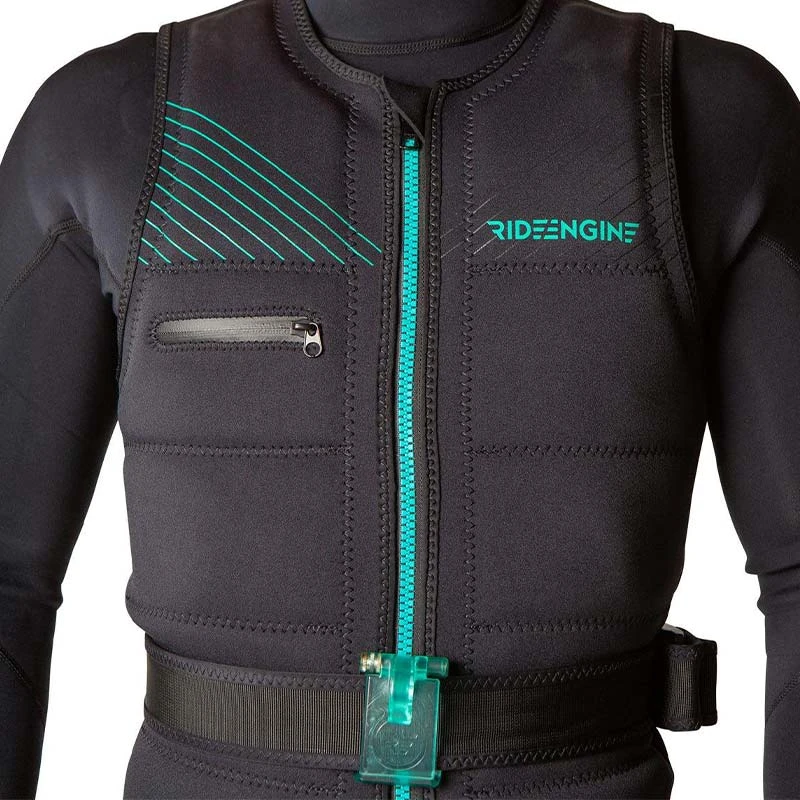 Between the board and foil, sometimes wing foiling can be a full contact sport. The Ride Engine Sky Hook Wing Foil impact vest is designed to protect you from any and all collisions while at the same time, it connects you to the power of your wing with the Nug harness line hook and you can also connect a board leash to a leash attachment point at the back of the vest.