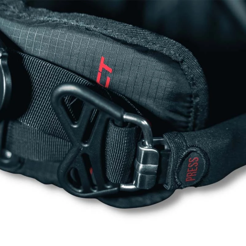 The Connect Wing harness has been designed to comfortably slide on skin, rashvest and/or neoprene. It can easily be rotated around your waist when lying on a board to paddle, keeping the hook away from the board and avoiding damage. An open angle Spreader Bar hook allows easy hooking in and out.